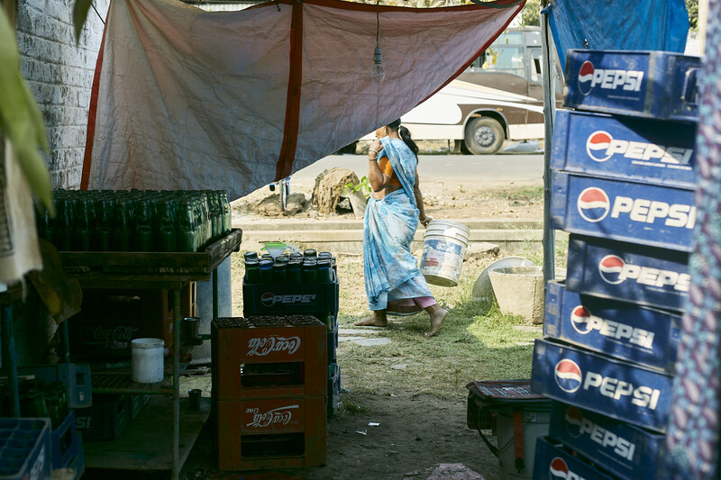 A significant part of my childhood in Vijayawada, India was spent awing every time the ‘goli’ pops before I was handed my drink. I was fascinated with the bottle. ‘Goli Soda’, as it is more commonly known in South India, is a codd-neck-bottled drink that is often sold with carbonated water or lime juice. With the advent of carbonated beverages, Goli Soda started facing a slow death. I spent a week with the family of Aseefa, her neighbors and her vendor, Baby, documenting ‘a day in the life of’ the bottle and the family dependent on it.