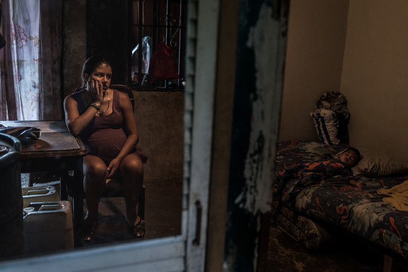 Roxana Gutierrez, 19 years old, looks after her son. While she and her husband Carlos, 20 years old, had steady jobs, it became harder for them to find food, which in turn pushed Carlos to begin stealing motorcycles. He is now serving a prison sentence, and she is pregnant with their second child.