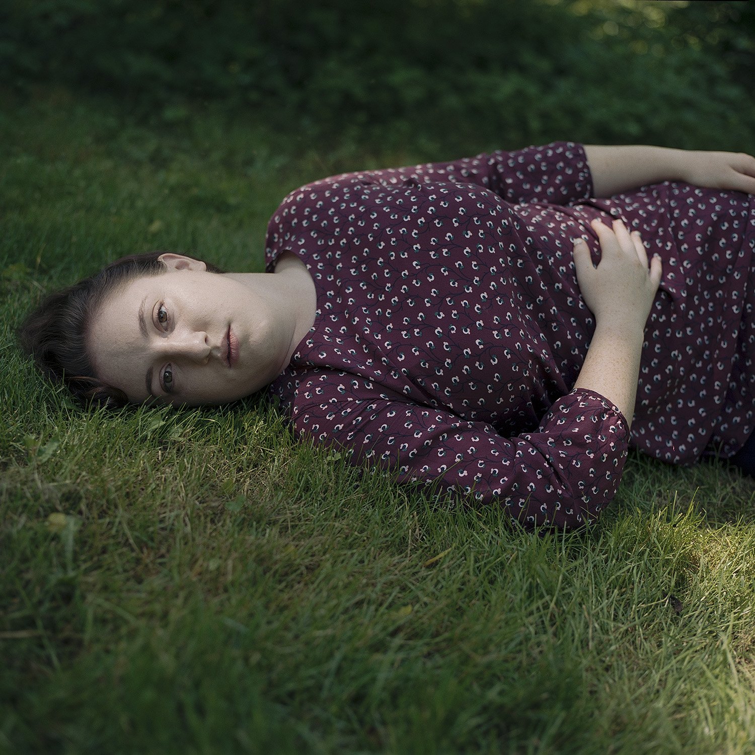 My photographs act as self-portraits. The figures are a physical embodiment of our entanglement with our past, collectively, and individually. Emerging from the lush landscape, the women and I look at one another as we begin to drop our facades, and for a few moments, understand each other perfectly. A window of alignment where all things superficial give way to vulnerability and strength.